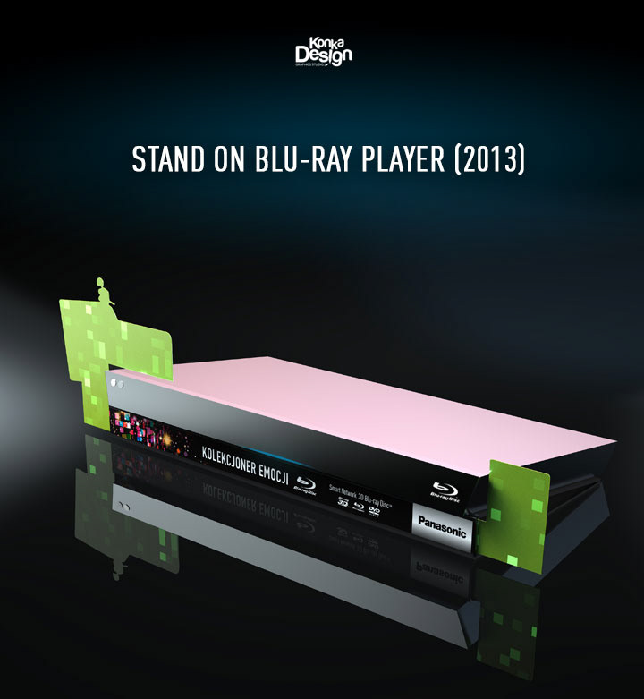 The project stands on a blue-ray player. The stand has a removable pocket for added lure. The project wypordukowany and implemented to promote products from Panasonic.
